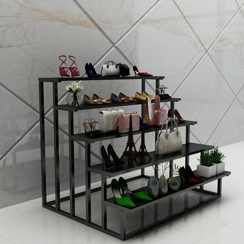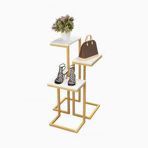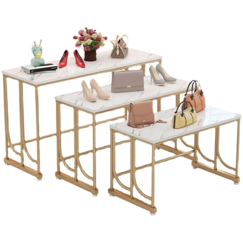 Shopping Mall ชุดโต๊ะโชว์เสื้อผ้า4ชั้น,กระเป๋าถือโลหะชั้นวางรองเท้าโชว์บนโต๊ะ