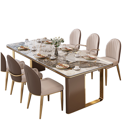 مقاعد لغرفة الطعام الفولاذ المقاوم للصدأ المعادن قرص من الرخام للمنضدة الفاخرة الطعام طاولات وكراسي مجموعة ل شقة مخصصة