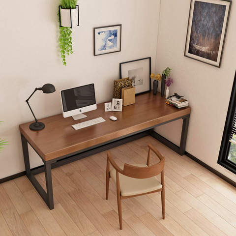 Einfache lange Massivholz platte Tisch Home Office Möbel Computer Schreibtisch mit Metall beinen Eisen rahmen Büro Schreibtische